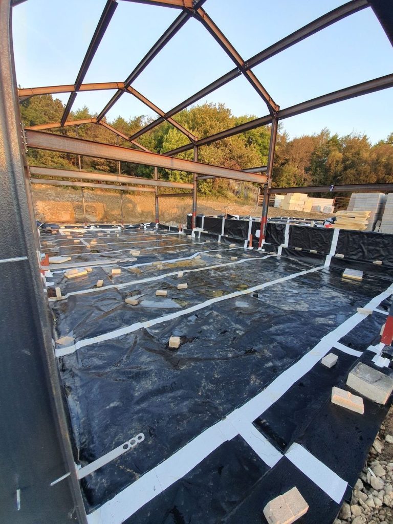Incorporating Delta Dual Proof pre-applied water proofing membrane prior to pouring the concrete slab over the formwork system.