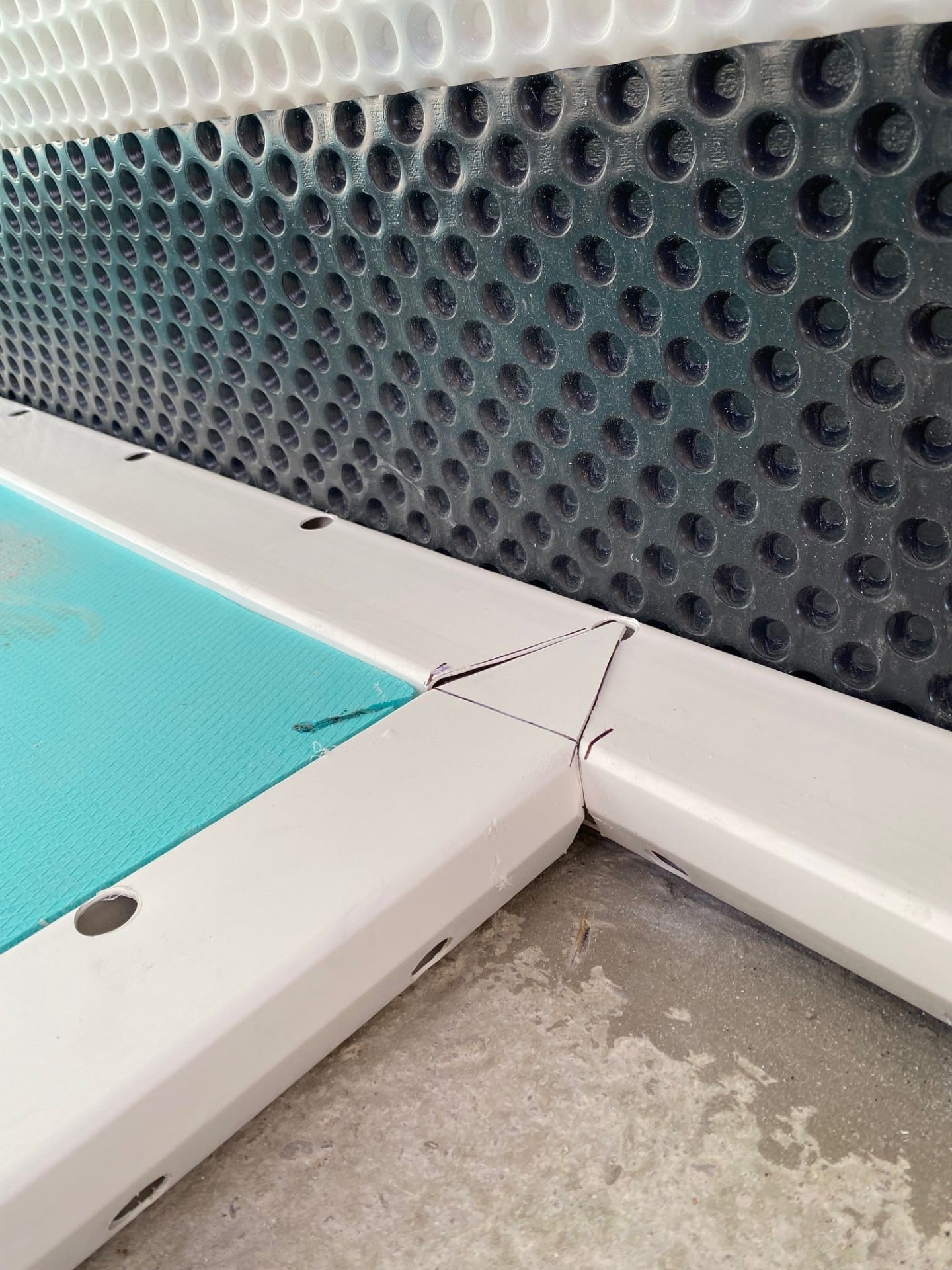Walls: We mechanically fixed the 8mm cavity drain membrane and PT mesh cavity drain membrane to the earth-retaining walls (floor to ceiling) and non-earth retaining walls (to 1.2 m high)