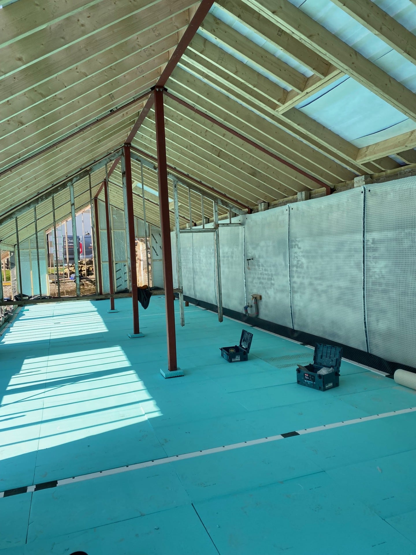 Newton 508 (8mm) eco floor membrane was installed over the insulation board in conjunction with cornerstrip.
