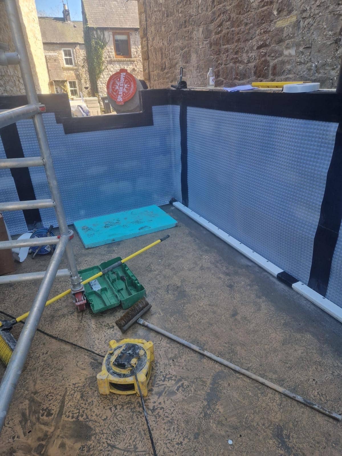 The Damptec team are currently waterproofing a new build lower ground floor extension in Tideswell in the Peak District, Derbyshire. Tideswell sits in a locality with the highest category for Radon and the waterproofing system therefore required the inclusion of radon gas protection.