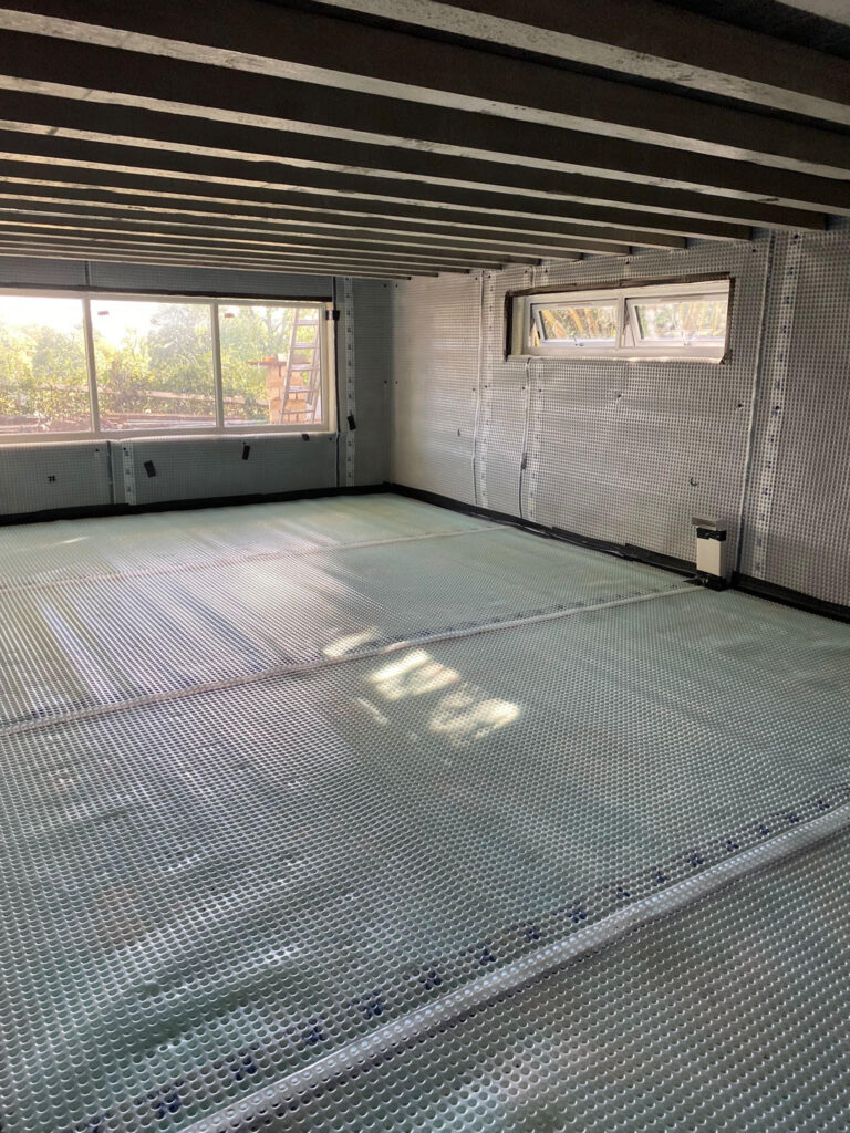 Tanking work has now been completed at this new build property in Chesterfield. This Type C waterproofing system incorporated Newton Fibran XPS 500 closed cell insulation on the floor. On the floor and walls we used Newton Base Drain channeling and Newton 508 Cavity Drain Membrane.